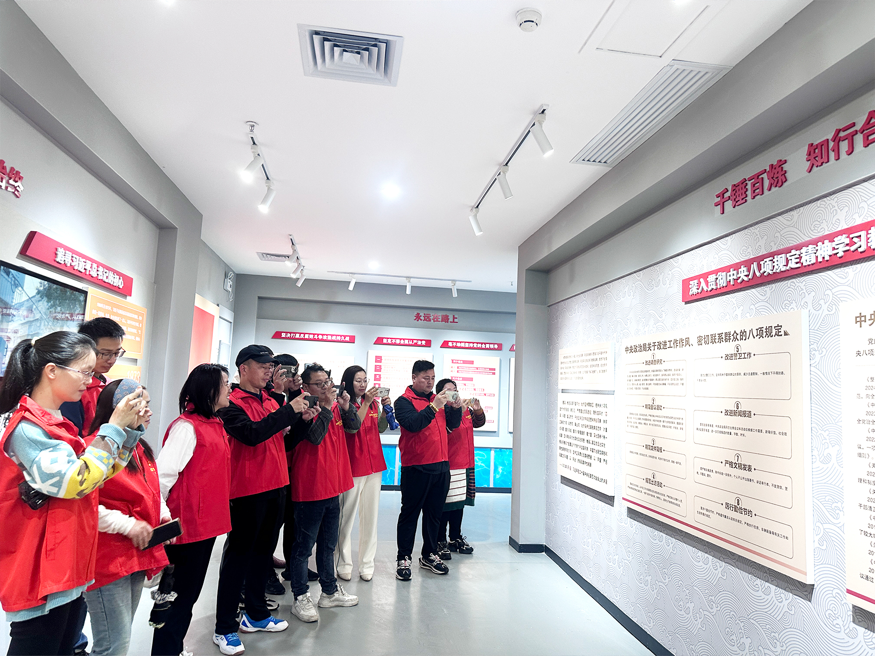展厅内,一幅幅图文并茂的展板,系统展示了中央八项规定出台的时代背景、具体内容以及实施以来取得的丰硕成果。讲解员详细解读了其在整治 “四风”、密切联系群众、规范公务活动等方面的核心要求,并结合企业运营实际,列举了多个因违反八项规定导致企业利益受损、声誉下降的真实案例。“这次课程让我对八项规定有了更深刻的理解,也让我意识到在工作中,每一个环节都要严守纪律,不能有丝毫松懈。” 参与学习的党员表示。