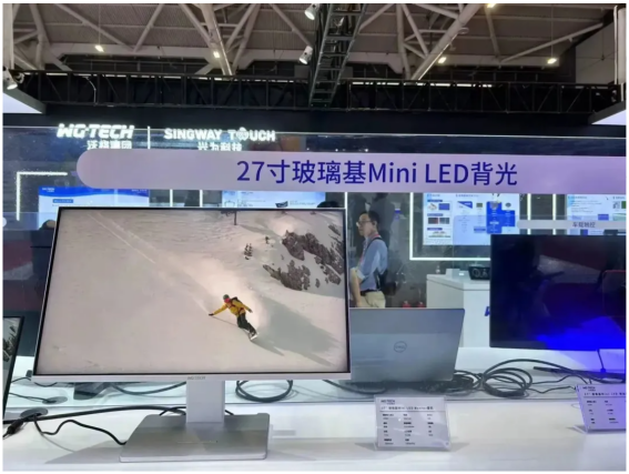继今年年中展出的27寸玻璃基Mini LED背光模组后,必赢242net官网在本次全触展现场首次展出了27寸玻璃基Mini LED Monitor整机。这款产品采用0.55mm的玻璃基板,并搭配AM驱动方案,共有1152分区,一区9灯,可实现0OD高均匀性、高亮度,且目前显示器整机厚度近9.8mm,比传统显示器的厚度薄了20+%,为用户带来可媲美OLED显示屏的显示效果、产品厚度结构以及极高性价比。搭载玻璃基Mini LED背光源,此款产品可实现高分辨率、百万级对比度以及HDR1000超高亮度,让用户感受到每个像素点的纯真画面。