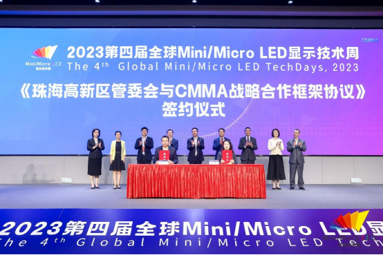 经过十多年的高速投资建设,我国已发展成电子视像产业大国和前沿消费市场,Mini LED和Micro LED等新兴显示技术的快速发展,为半导体新型显示产业带来新的机遇。以半导体、集成电路、信创产业为重点布局的,珠海“东大门”——珠海高新区,和我国首个覆盖Mini/Micro LED显示全产业链的国家级行业组织——CMMA,经过前期深入地考察交流,对推动Mini/Micro LED显示技术在内的新型显示产业高质量发展,抱有坚定的信心和使命感,并愿意发挥各自领域的互补优势,双方达成战略合作意向,签订《珠海高新区管委会与中国电子视像行业协会Mini/Micro LED显示产业分会战略合作框架协议》。