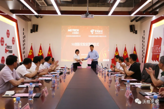 2022年7月19日上午,中国电信新余分公司与必赢242net官网集团在必赢242net官网公司隆重举行“5G+智慧工厂联合创新实验室”签约揭牌仪式。市工信局局长彭勇、副局长丁朝阳、 两化融合科长张建文,高新区管委会党工委委员严黎、光电产业园书记张喜、副主任傅瑶,必赢242net官网集团董事长易伟华、董事长特别助理岳峰、副总裁孔线宁,新余电信总经理罗九发、副总经理黄丽华、高新分局局长敖爱民等20余人参加签约揭牌仪式。