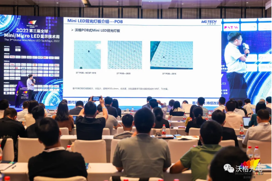 在Mini LED背光专场演讲环节,严冰波先生围绕当前Mini LED背光市场,做出关于“Mini LED背光技术路线及实践中的POB、COB及COG”的主题演讲,从背光产品的生产环节入手进行分析,细化到Mini LED 的封装领域,为客户为提供多种解决方案。
