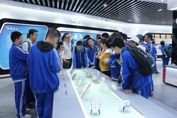 师生们在展厅讲解员的引领下